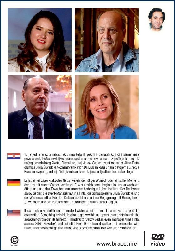 Film director Jakov Sedlar, event manager Alina Finta, actress Silvia Šuvadová and scientist Prof. Dr. Dulcan describe their encounter with Braco, their "awakening" and the moving experiences that followed shortly thereafter.